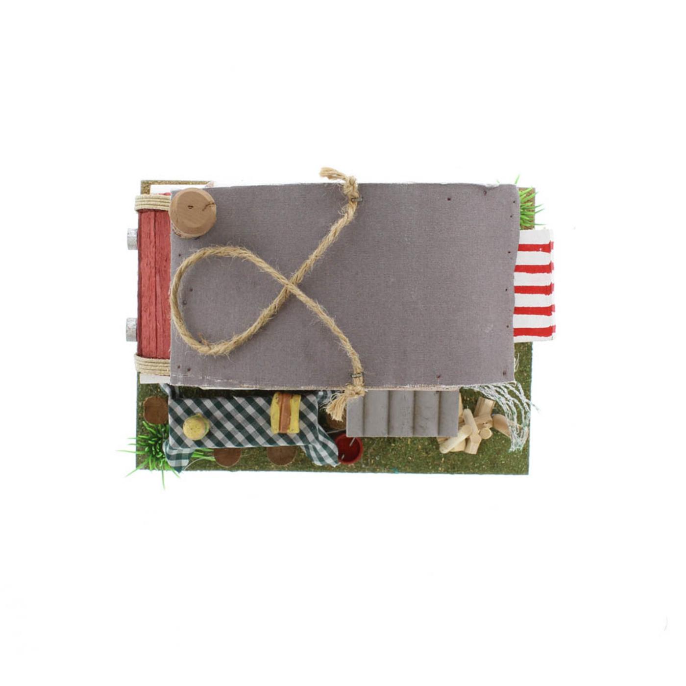 • Create a comfy campground for your fly-in guests with this cozy little trailer! Comical birdhouse comes complete with all the accessories of an old-time outdoor paradise.