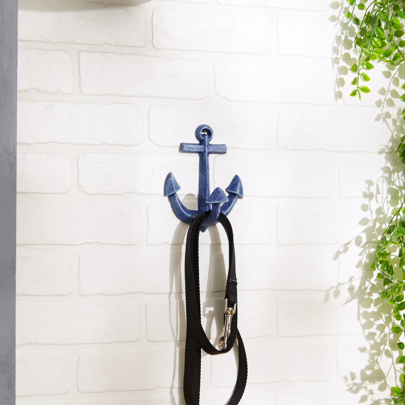Nautical Blue Anchor Wall Hook - Decorative Coastal Home Decor