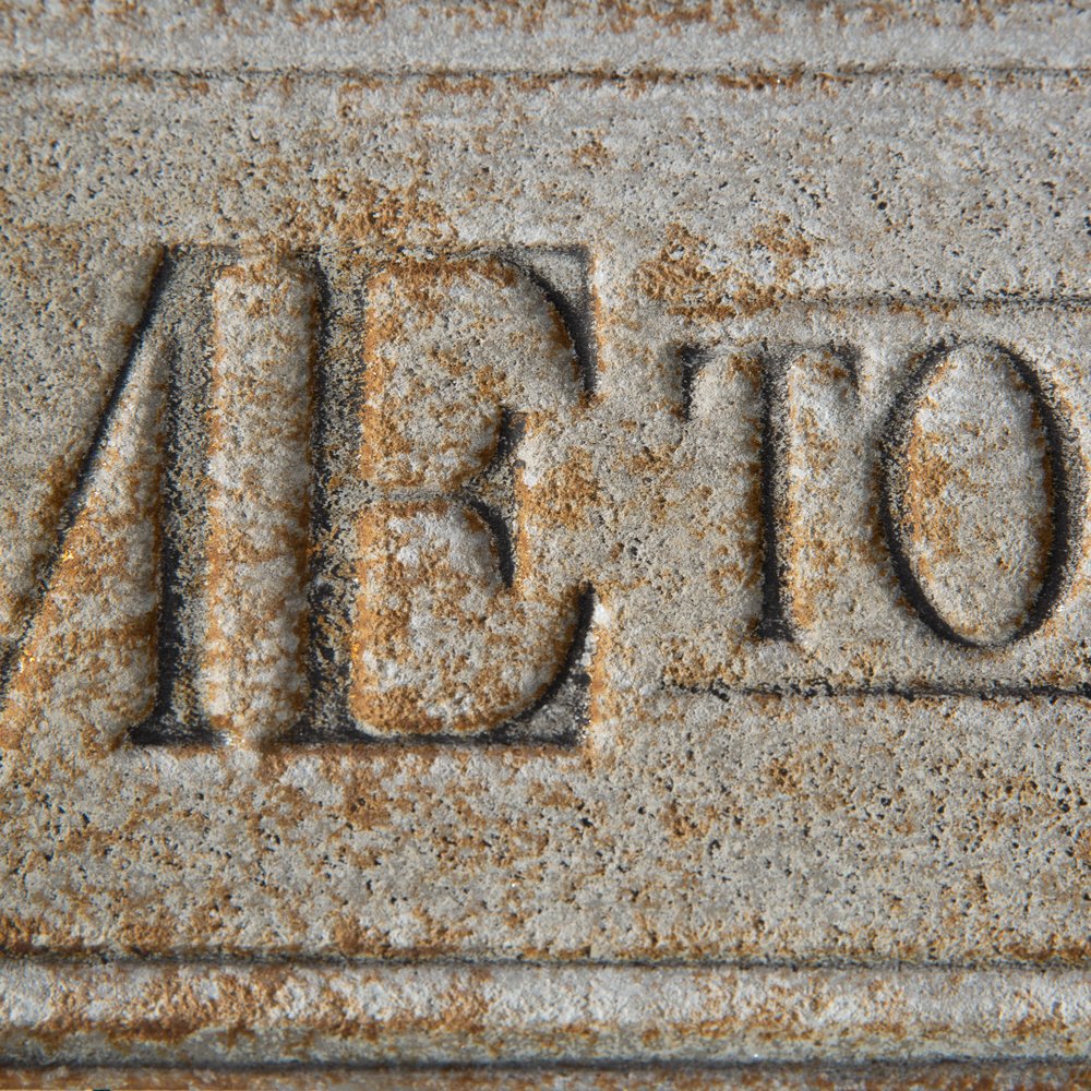 Welcome to our porch! Sit back and relax with our rustic porch sign. This item is crafted of metal. To hang, use its two triangle hangers