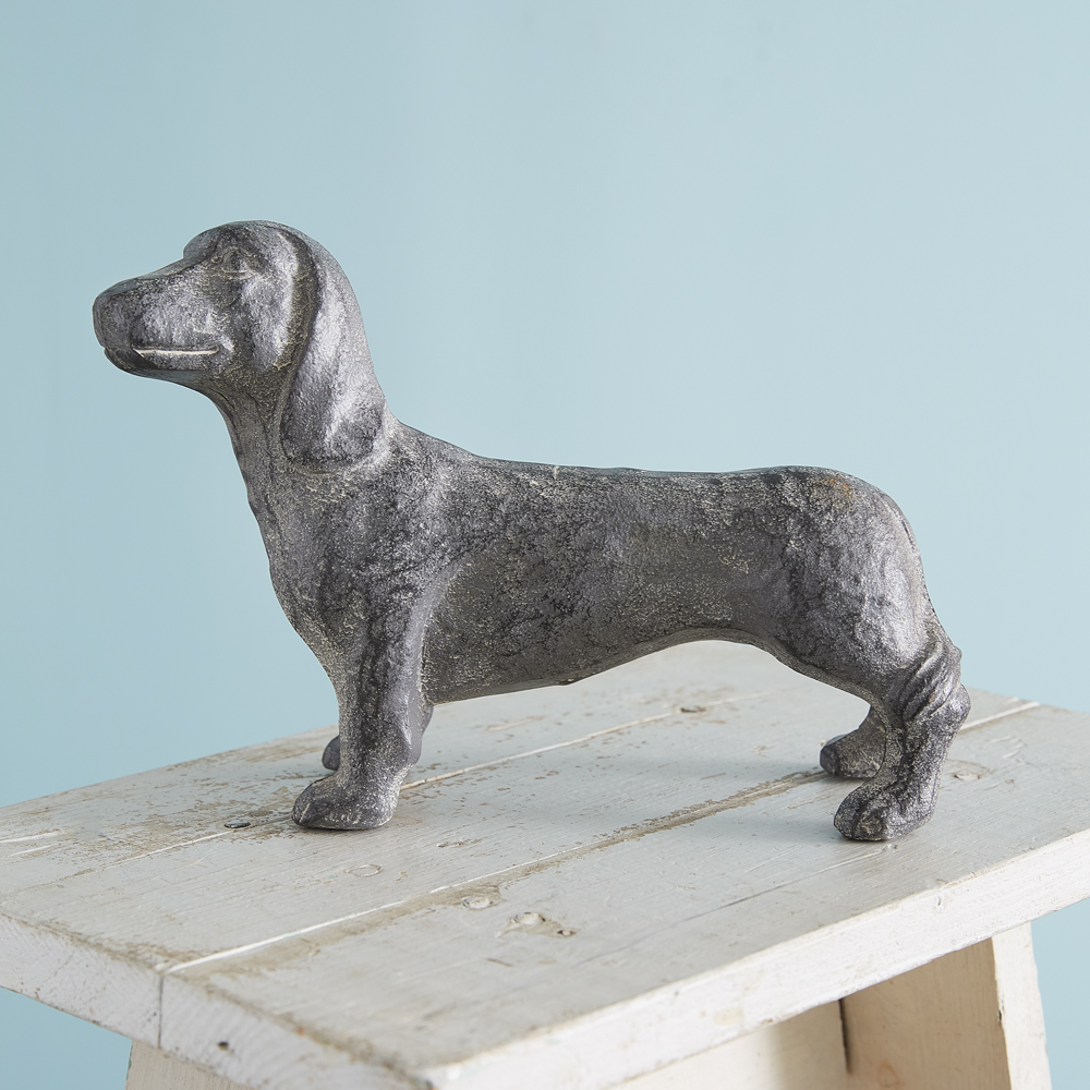 Featuring man's best friend, our darling Dachshund Figurine is the perfect addition to an animal lover's garden or home. Item is fashioned of cast iron.