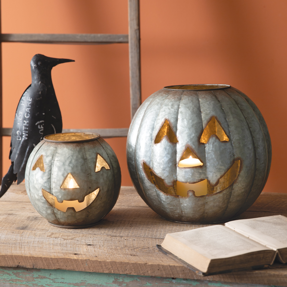Set of Two Galvanized Pumpkin Luminaries Set of Two Galvanized Pumpkin Luminaries