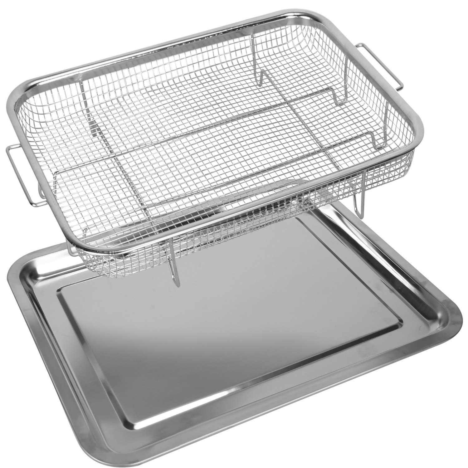 Home > 2Pcs Air Fryer Basket Tray 15.35x11.61in Stainless Steel Rustproof Non-Stick Oven Pan and Tray For Bake Grill Crispy Food Dishwasher Safe